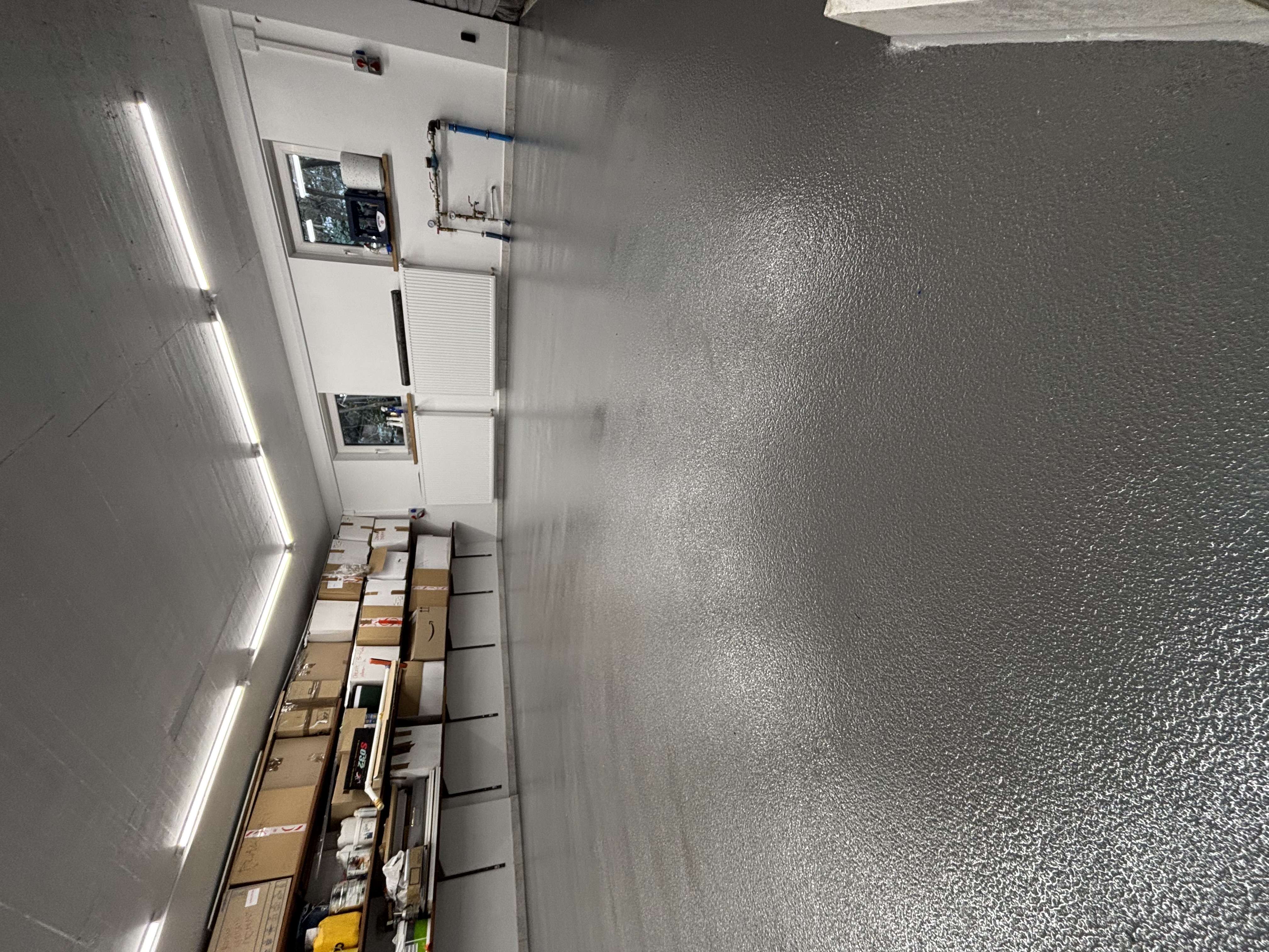 Nowoczesny prywatny garaż w Warszawie z trwałą i stylową powłoką epoksydową na bazie piasku kwarcowego.